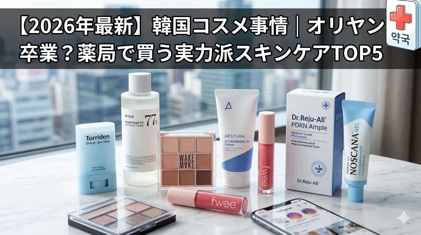 - 賢く使い分ける楽しさ: 旬のメイクは「オリーブヤング」、攻めのスキンケアは「薬局」と使い分けるのが2026年流。