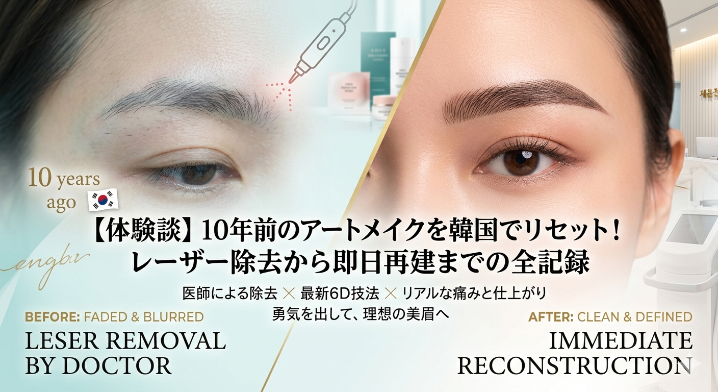 「昔のアートメイクがぼやけて、なんだか顔が古く見える……」 そんな悩みを抱えていた私が、美容大国・韓国のクリニックで「古いアートメイクの完全除去」と「最新アートメイクの再建」を同時に行ってきました。